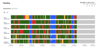 When your process is running, XL shows you the current state of your production line, how long you’ve been in that state, from one to five KPIs (that you can choose), a live chronogram that shows you exactly what happened during your shift, the part you are currently running, and the time.